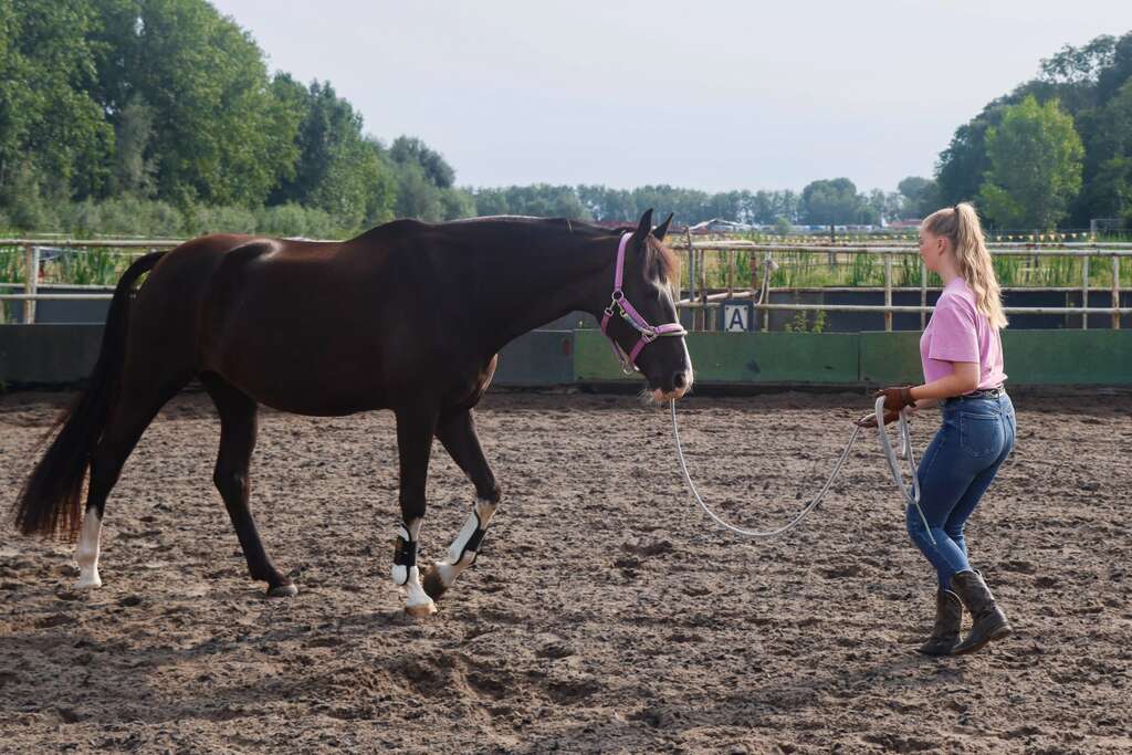 Bij het loswerken richten we op het controle hebben over het tempo en richting van het paard wat losloopt in de bak.